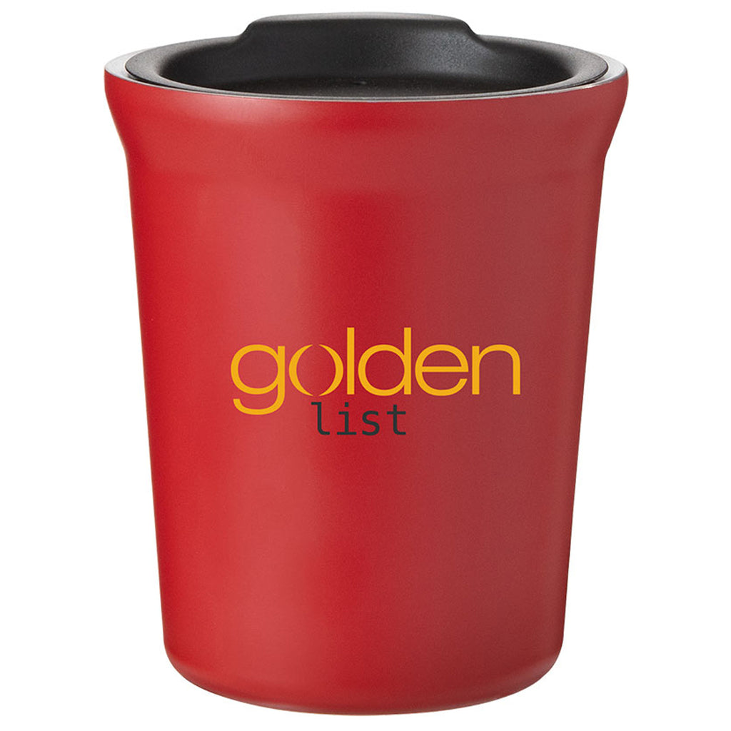 The ETS Matte Red 8 oz Stainless Steel Hudson Tumbler has copper vacuum insulation and a push-on lid with thumb tab, which provides better insulation and spill prevention.The hudson can be used for both hot or cold beverages, it keeps hot drinks heated for 8 hours and cold drinks cool for 16 hours. This is a great buy for customer giveaways, comes with a gift box, and includes 1 color imprint per tumbler.The minimum order for this product is 48 pieces.