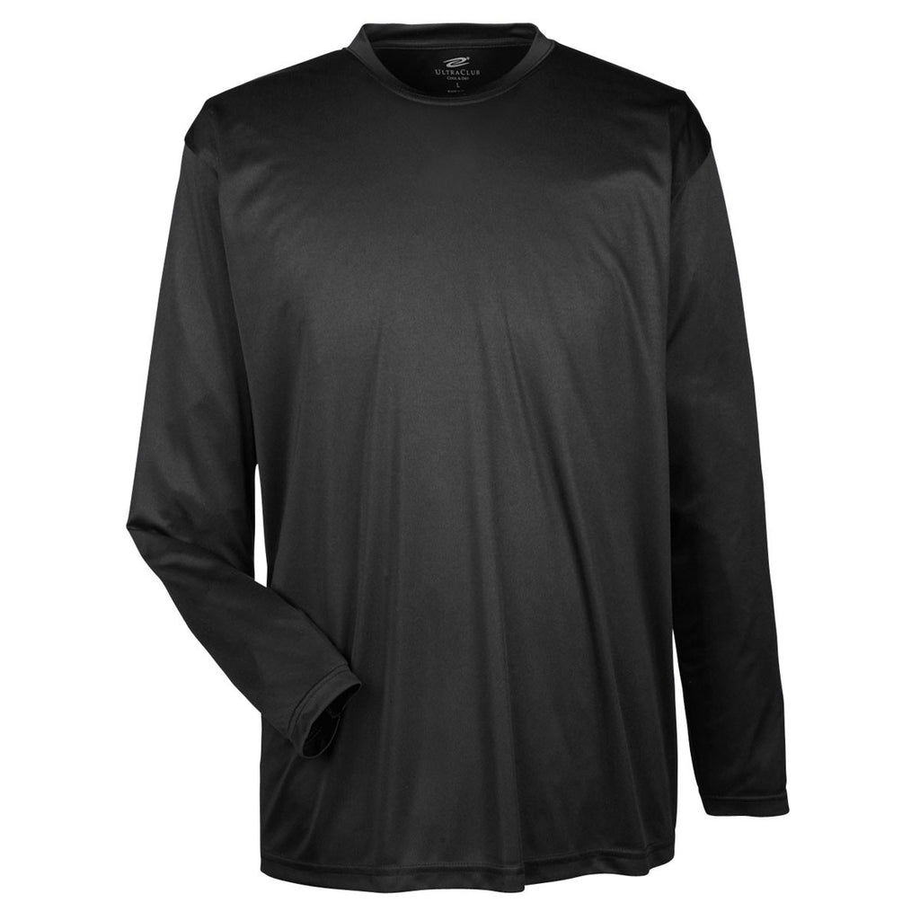 UltraClub Men's Black Cool & Dry Sport Long-Sleeve Performance Interlock T-Shirt