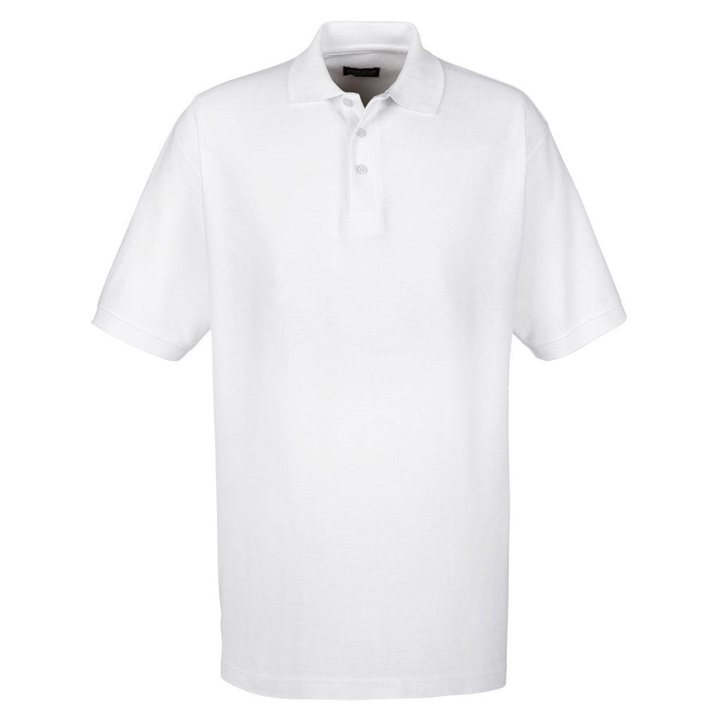 We have a secret we want to share. The UltraClub Men's White Whisper Pique Polo represents the ideal corporate apparel to bring along on business trips. Easy to care for cotton and polyester pique offer the potent one-two punch of high fashion and long lasting durability. The elegant polo features contoured flat-knit collar and cuffs to create a refined look that potential customers notice. Turn the glances at the polo into a powerful marketing tool by adding a custom logo to the large imprint area. Single-needle top stitching at the neck, sleeves, and shoulders reduces the number of stitch marks that diminish the quality of other styles of polos.Corresponding Women's Style: UltraClub Women's White Whisper Pique Polo