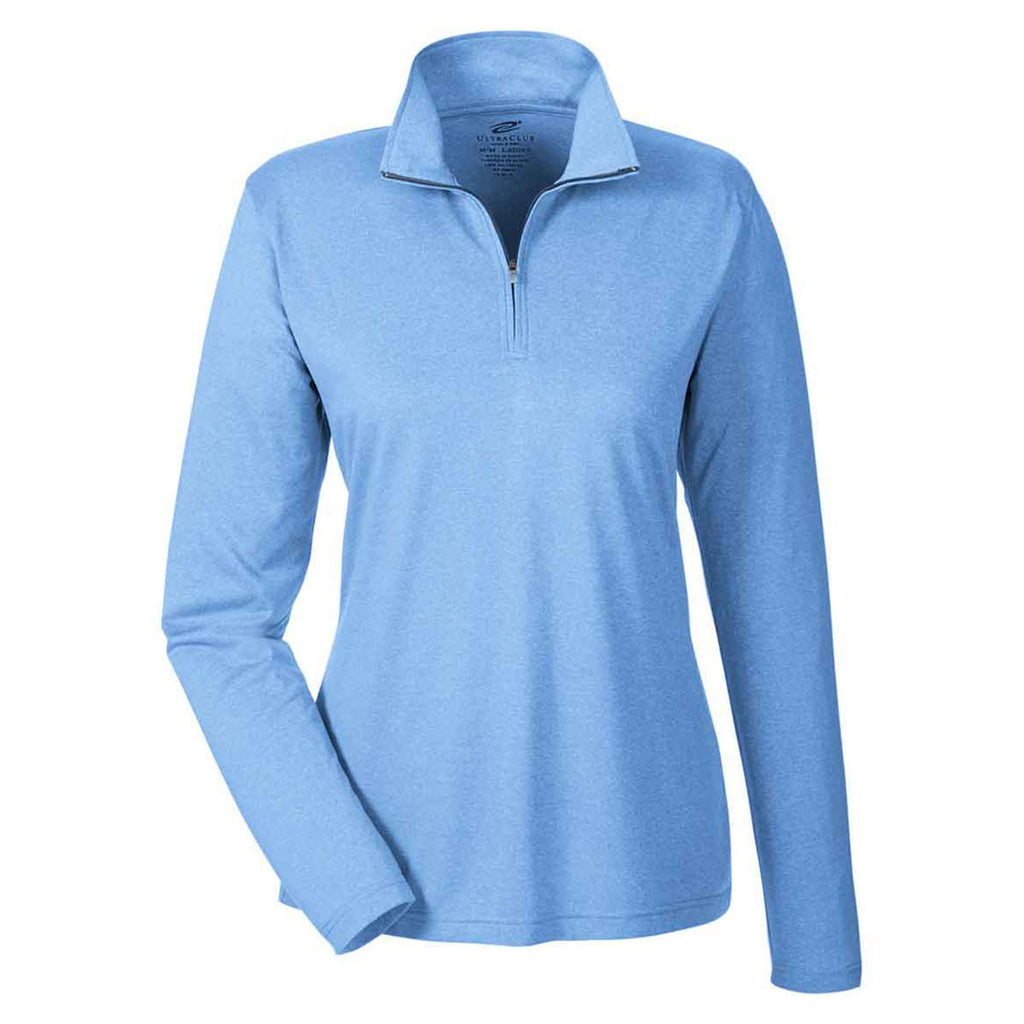 UltraClub Women's Columbia Blue Heather Cool & Dry Heathered Performance Quarter-Zip