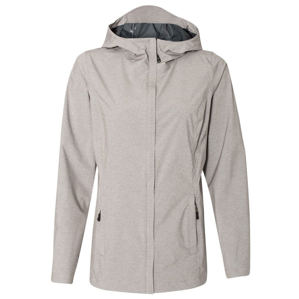 The corporate logo Weatherproof Women's Cloud Cover Melange 32 Degrees Melange Rain Jacket will keep you warm and dry during rainy weather. Complete with many features such as a durable 82% nylon/18% polyester material, adjustable hood, water- and wind-resistant material, and separate travel pouch for easy storage, this rain jacket is the ideal outerwear item to add to your wardrobe. Put your company logo on the front of your jacket and you have the perfect gift to provide to your employees as corporate apparel. Choose from two classic colors and pick the one which goes best with your embroidery logo.Corresponding Men's Style: Weatherproof Men's Cloud Cover Melange 32 Degrees Melange Rain Jacket