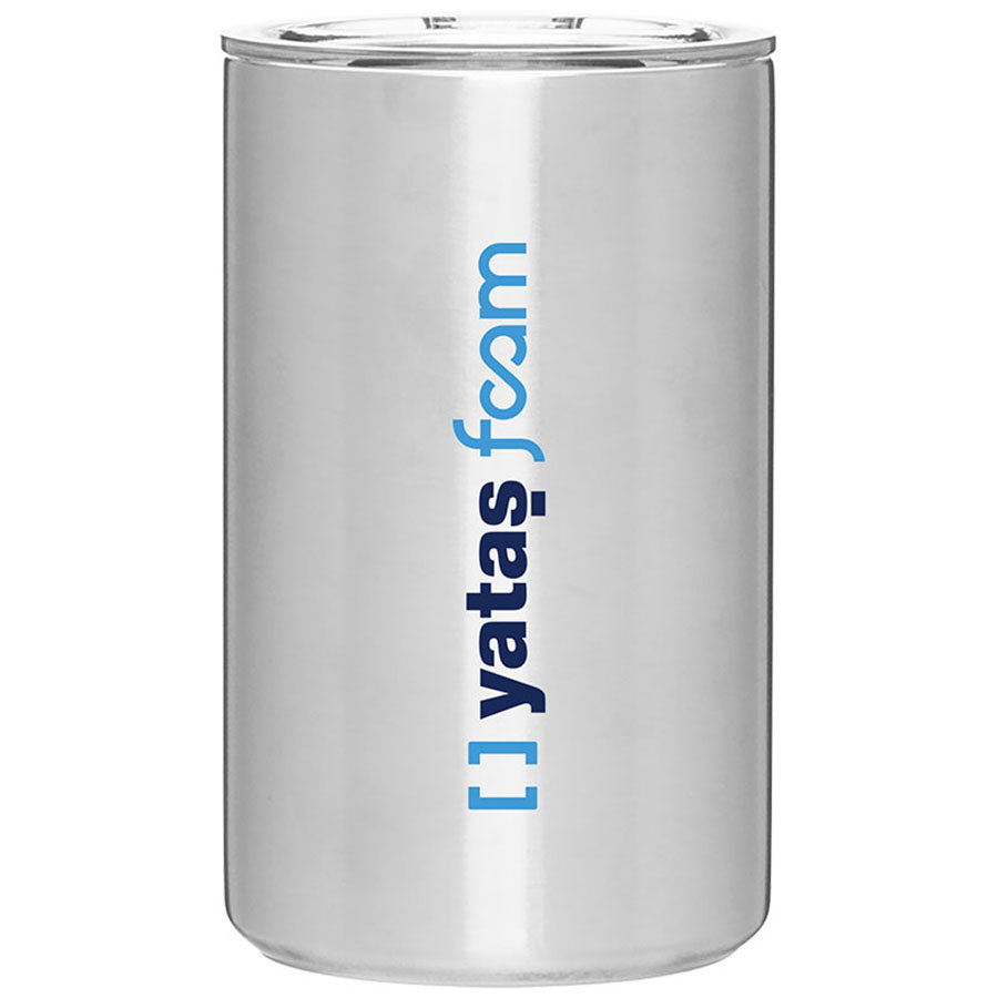 Add your company's custom logo or design to the ETS Steel 11 oz Apollo Tumbler to create a tradeshow giveaway item or employee gift that everyone will have use for. This unique can cooler features superior copper vacuum insulation so your drink will stay colder for longer.