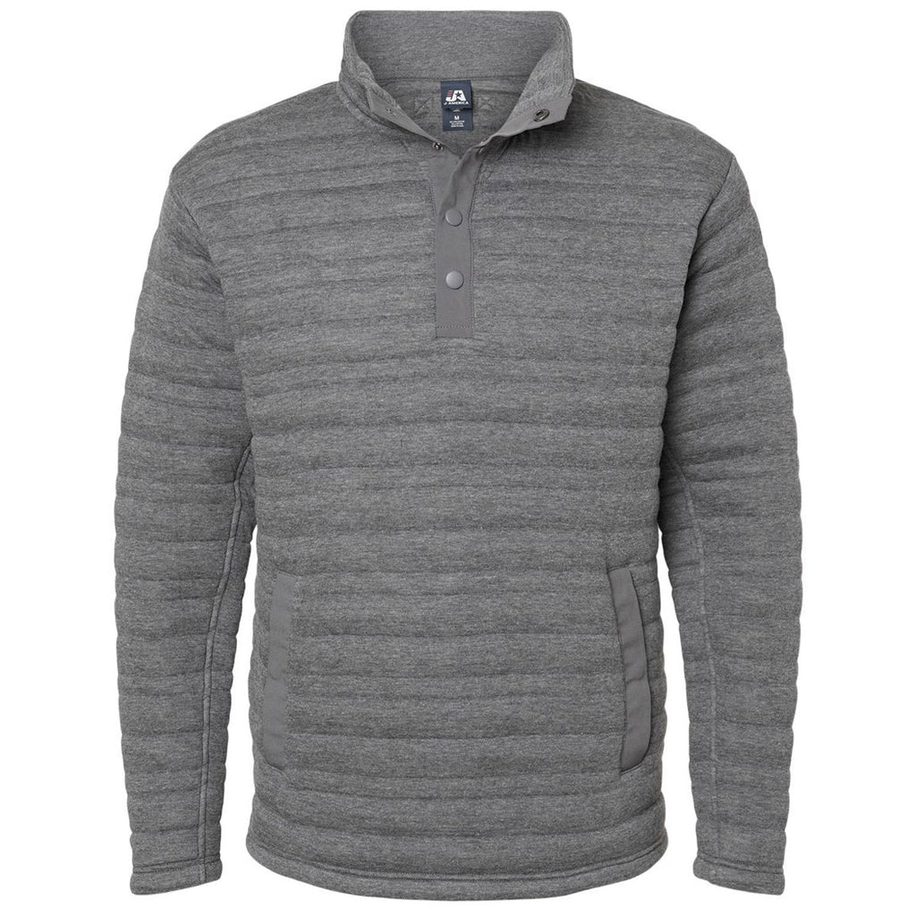 The J. America Men's Charcoal Heather Horizon Snap Pullover is a thoughtfully designed layering piece that is ready to show off your company's custom logo or design. A polyester fill keeps warmth trapped inside, making it great for chilly weather conditions. The sleek silhouette also makes it ideal for audiences of all demographics.Highlights