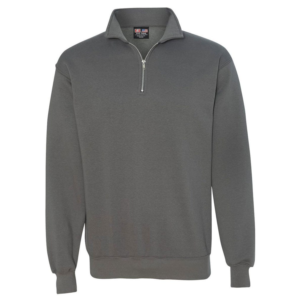 Bayside Men's Charcoal USA-Made Quarter Zip Pullover Sweatshirt