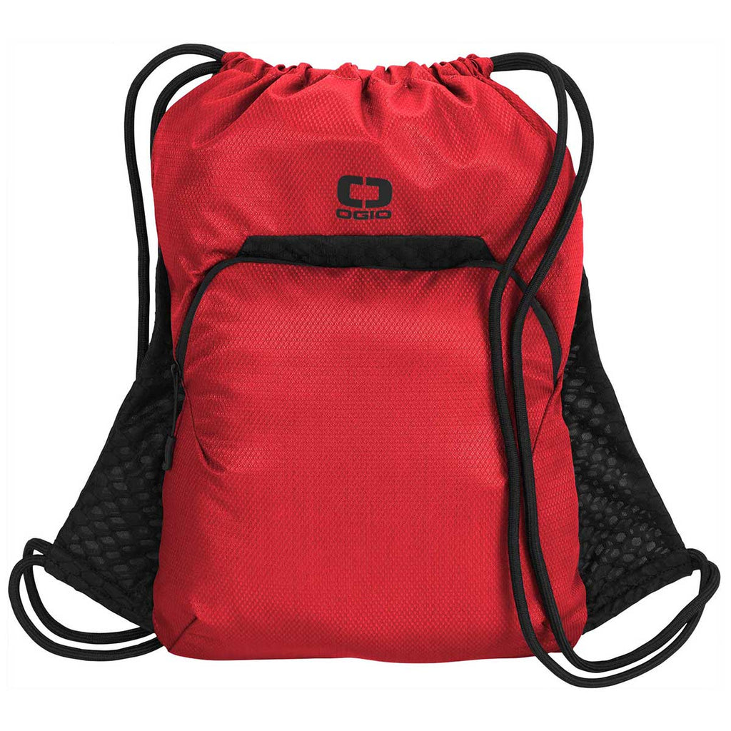 Work, school, and errands just got easier with the custom OGIO Ripped Red Boundary Cinch Pack. Made of 300D poly PU, this cinch pack is perfect for carrying daily needs to and from the office, the gym, or the next team event. The drawstring top with durable straps, front zippered pocket where your custom logo will appear, and spacer mesh accents make this the perfect choice as a daily carry. Add a company logo to offer these as employee gifts for the holidays or a special occasion. The cinch strap does buckle to make sure your items do not fall out while going about your day.
