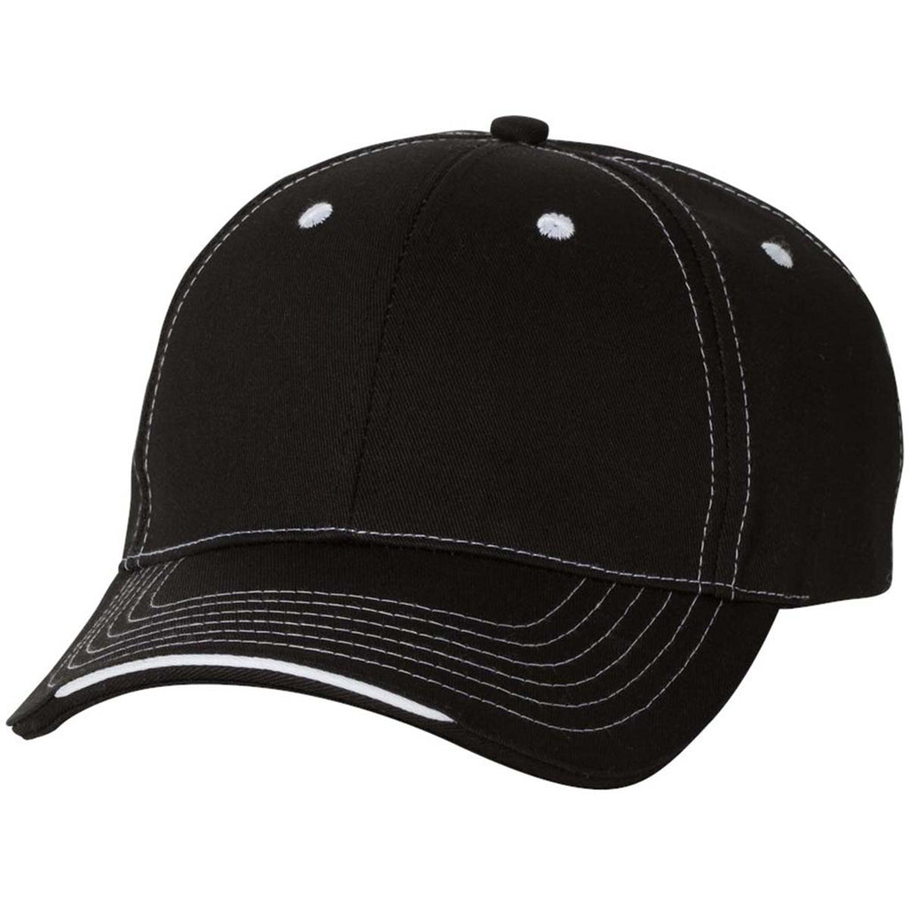 Get creative with your employee apparel by adding a custom Sportsman Black Tri-Color Cap in a variety of color combinations. Made of 100% cotton and Chino twill this is a must have cap due to its unique look. Add a corporate embroidery to the structured, six panel, mid-profile cap as a form of advertising or as gifts. The pre-curved accent stitch layered sandwich visor offers a hook and loop closure for easy fitting. This will be the headwear everyone wants after you add a custom embroidery of your choosing. Place your order today to be prepared for whatever cap needs you may have.Highlights