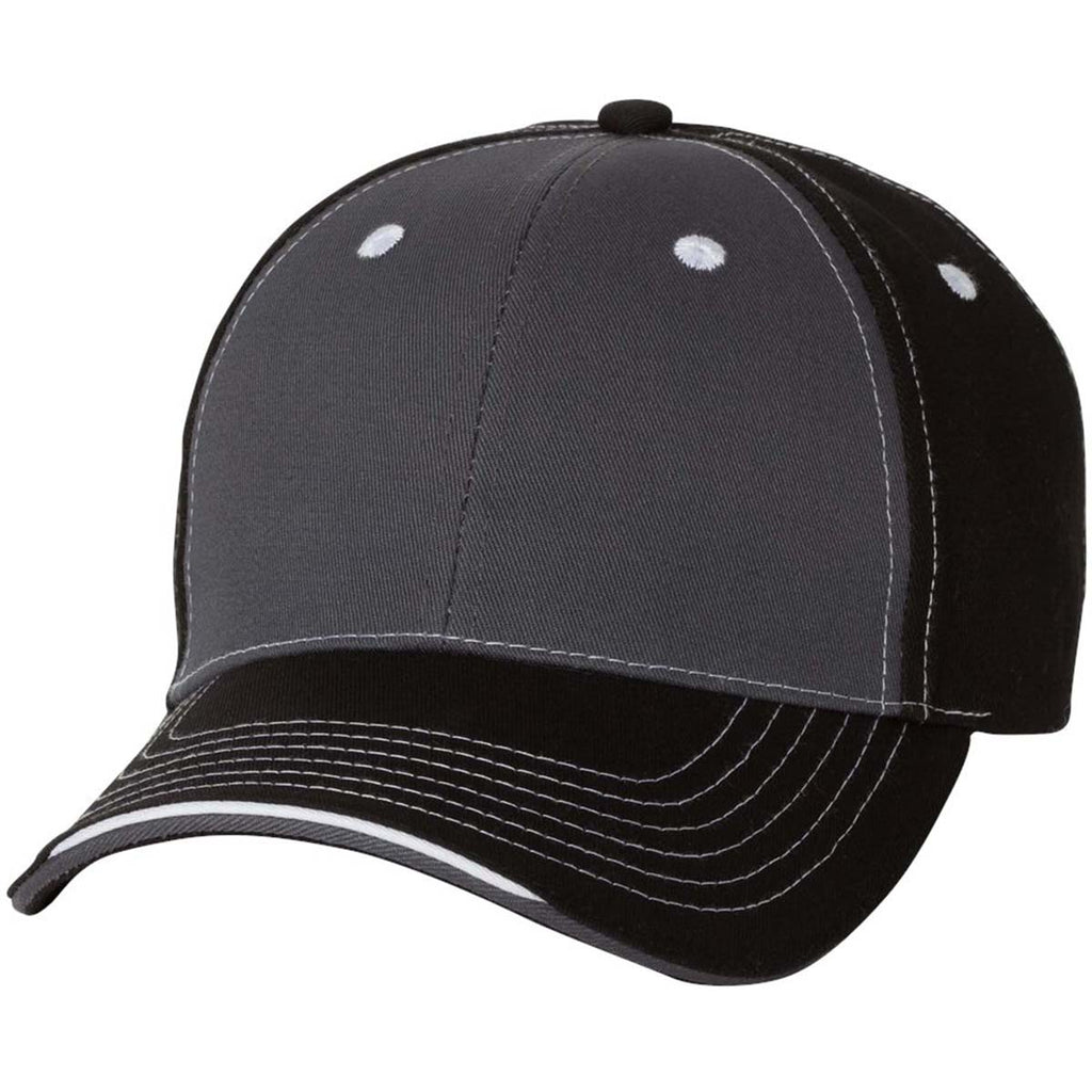 Get creative with your employee apparel by adding a custom Sportsman Charcoal/Black Tri-Color Cap in a variety of color combinations. Made of 100% cotton and Chino twill this is a must have cap due to its unique look. Add a corporate embroidery to the structured, six panel, mid-profile cap as a form of advertising or as gifts. The pre-curved accent stitch layered sandwich visor offers a hook and loop closure for easy fitting. This will be the headwear everyone wants after you add a custom embroidery of your choosing. Place your order today to be prepared for whatever cap needs you may have.Highlights