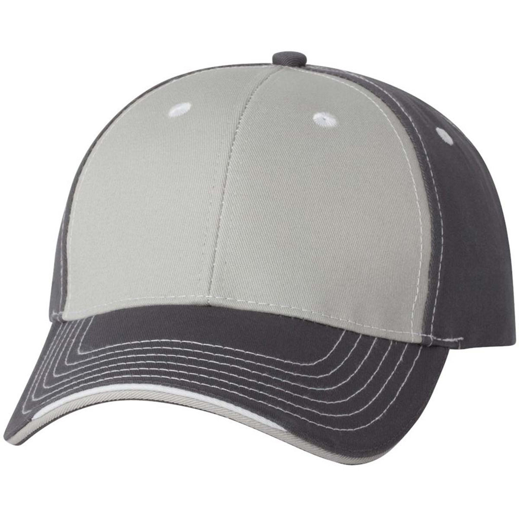 Get creative with your employee apparel by adding a custom Sportsman Grey/Charcoal Tri-Color Cap in a variety of color combinations. Made of 100% cotton and Chino twill this is a must have cap due to its unique look. Add a corporate embroidery to the structured, six panel, mid-profile cap as a form of advertising or as gifts. The pre-curved accent stitch layered sandwich visor offers a hook and loop closure for easy fitting. This will be the headwear everyone wants after you add a custom embroidery of your choosing. Place your order today to be prepared for whatever cap needs you may have.Highlights