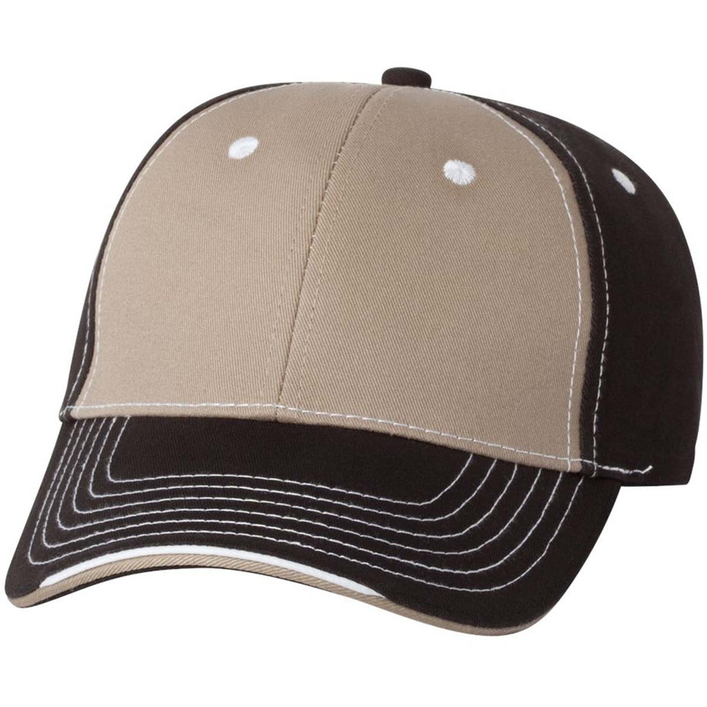 Get creative with your employee apparel by adding a custom Sportsman Khaki/Black Tri-Color Cap in a variety of color combinations. Made of 100% cotton and Chino twill this is a must have cap due to its unique look. Add a corporate embroidery to the structured, six panel, mid-profile cap as a form of advertising or as gifts. The pre-curved accent stitch layered sandwich visor offers a hook and loop closure for easy fitting. This will be the headwear everyone wants after you add a custom embroidery of your choosing. Place your order today to be prepared for whatever cap needs you may have.Highlights