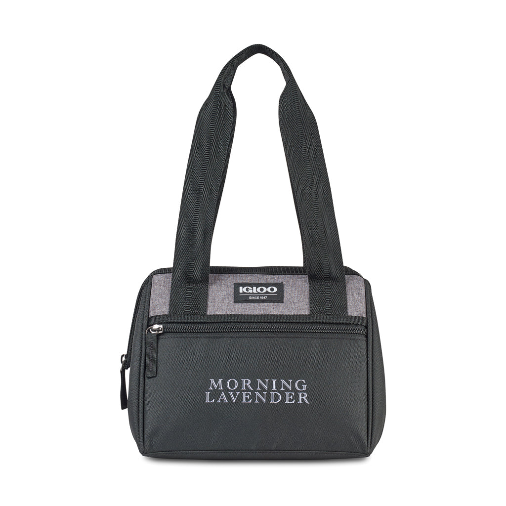Brighten up the lunch routine of your customers and employees with the freshness provided by Igloo Heather Grey Paneled Stripes Leftover Lunch Bag engineered with PEVA heat sealed lining. A perfect gift or giveaway, the lunch bag can be customized with company name and logo.