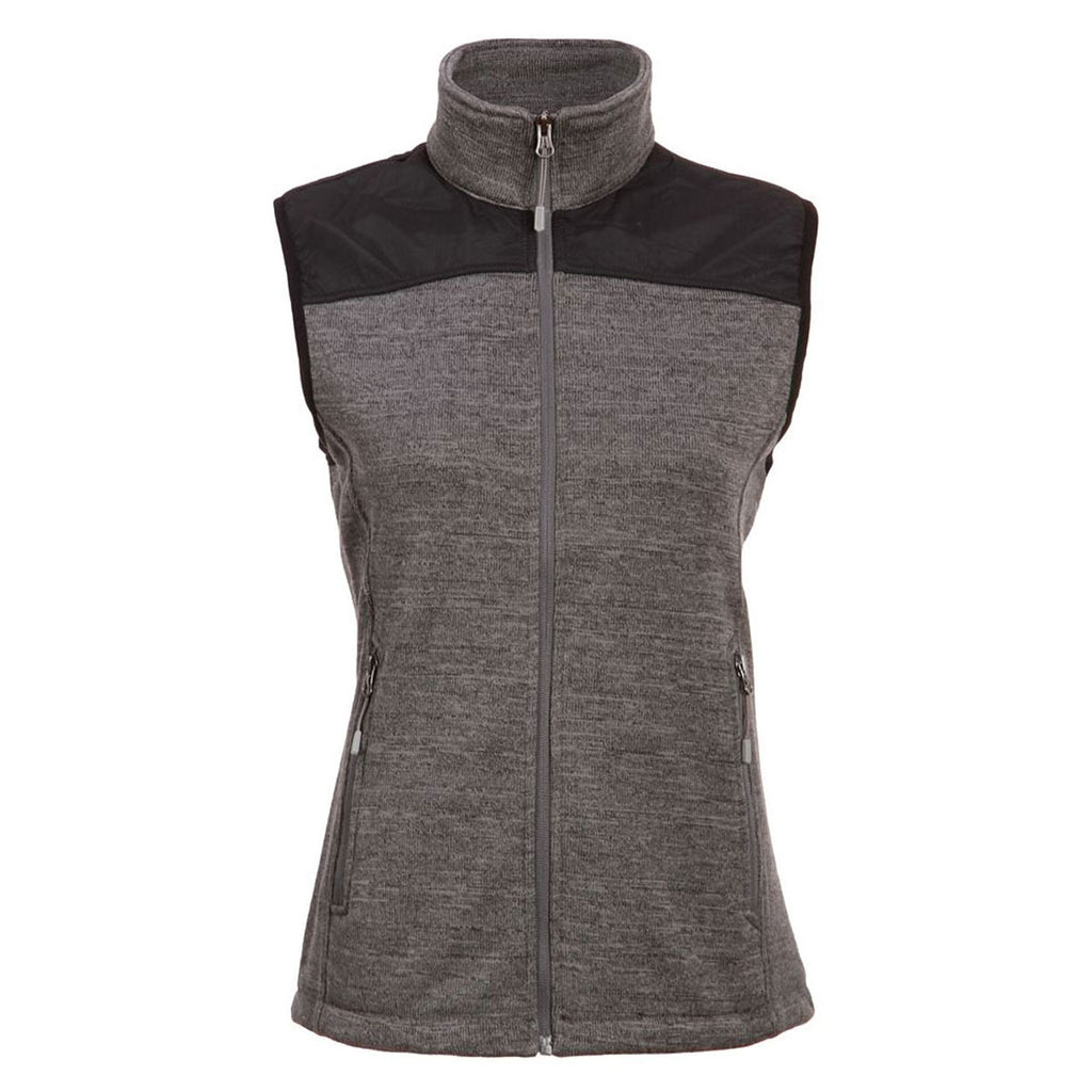 Put on the wind and water resistant embroidered Landway Women's Heather Charcoal Captain Vest to remain warm and dry any season of the year. Sweater-knit fleece creates an additional fabric layer that traps body heat to generate warmth. Making this layering piece great for a day at the office and while also being a good addition for an outdoor adventure. Rugged 100% polyester resists the types of rips and tears that send other styles of cold weather corporate apparel to the dumpster. Open bottom hems highlight the stylish design of the multi-purpose vest. Attach your corporate logo to turn potential customers into lifelong patrons of your business.Corresponding Men's Style: Landway Men's Heather Charcoal Captain Vest