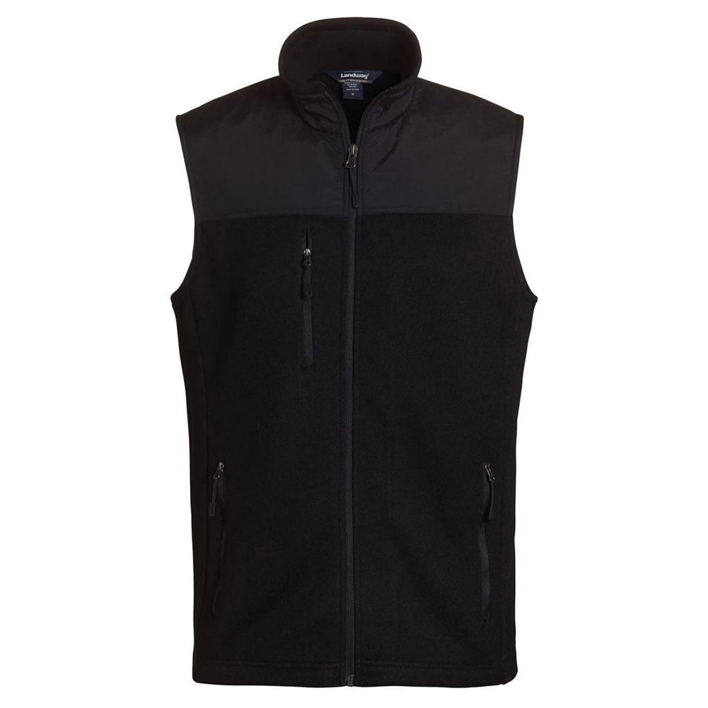 Outfit your team with the custom embroidered Landway Men's Black Captain Vest. Sweater-knit fleece traps body heat to ensure you remain comfortable throughout the day. Making this a great option to layer for added warmth. One-hundred percent rip and tear resistant polyester gives you corporate apparel that delivers high performance for years to come. The perfect vest to wear for outdoor recreational activities prevents wind and water from forcing you indoors before you are ready to call it a day. Add your company logo on the large imprint area and watch awareness of your brand soar. Your employees will be happy to promote your custom logo when it's attached to this Landway vest.Corresponding Women's Style: Landway Women's Black Captain Vest