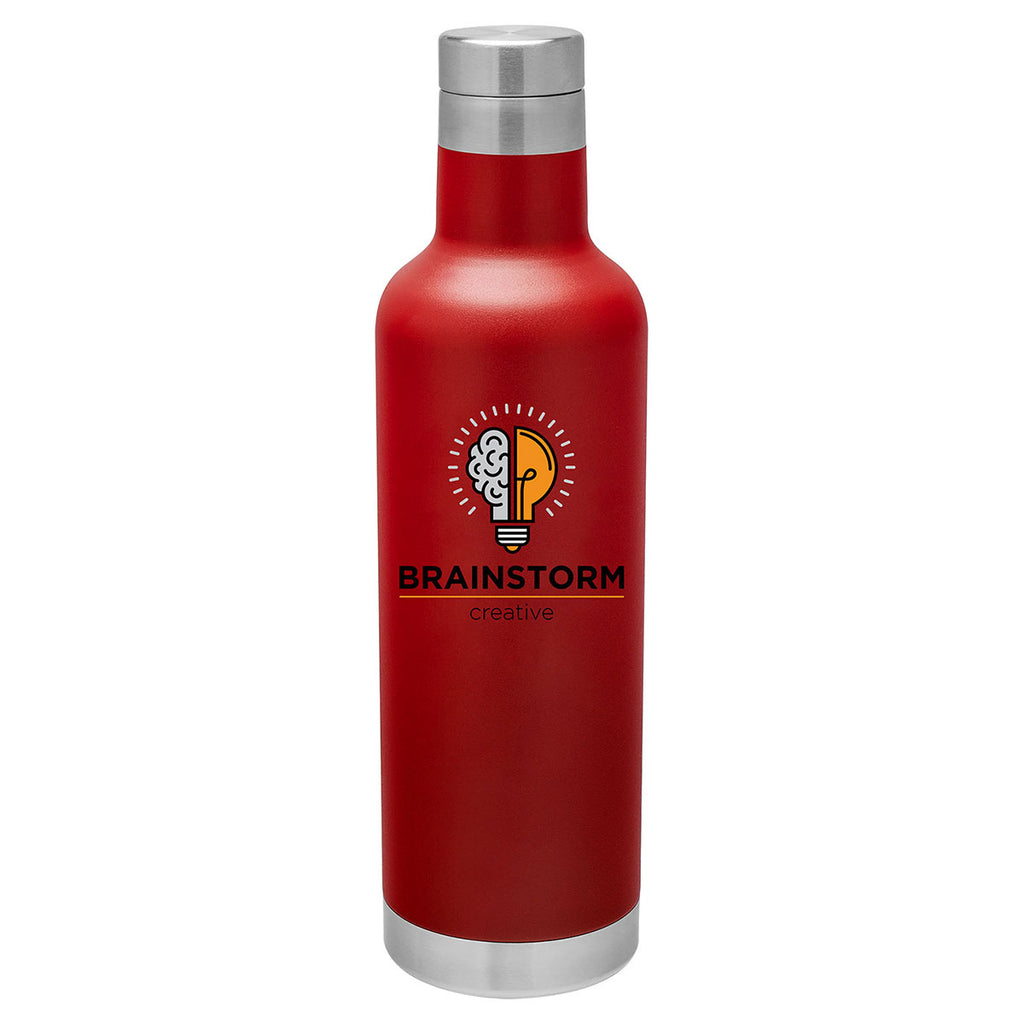 Put your company logo on the H2Go Matte Red Noir Bottle 25 oz and put it on your new employees' desks to greet them on their first day of work. This is drinkware with a high-end look that your people can use on the commute to and from work. The minimum order for this product is 48 pieces.Highlights