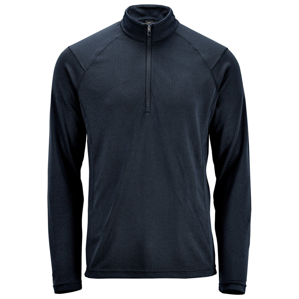 Get active with a custom Stormtech Men's Navy Mesa 1/4 Zip Pullover. This sleek base layer offers moisture management technology, a UPF rating of 50+, and contour side panels. The pullover is made from 100% recycled polyester for sustainability. It is breathable and allows for a free range of movement. Perfect for working out, running, hiking, or anything active.