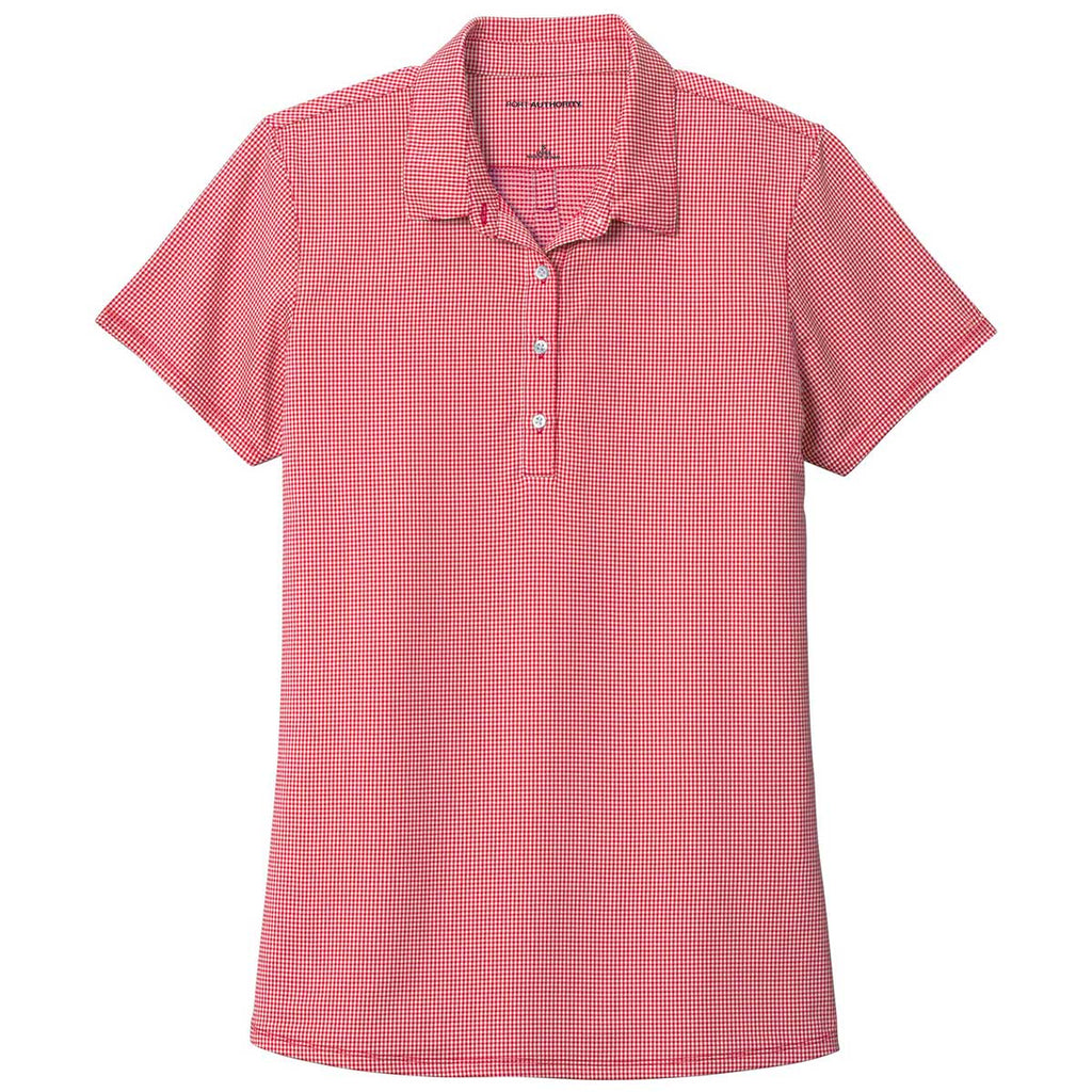 Fun meets functionality in the custom Port Authority Women's Rich Red/White Gingham Polo. Made of a midweight 90/10 poly/spandex, this polo easily goes from the office to dinner and back again. Snag resistant material with side vents means range of movement will not be hindered whether chasing children or running down a lead. Add a company logo to use these as company uniforms or to use as attire at a corporate event. A slightly curved hem and inverted back box pleat provide a bit of femininity to the polo.Corresponding Men's Style: Port Authority Men's Rich Red/White Gingham Polo