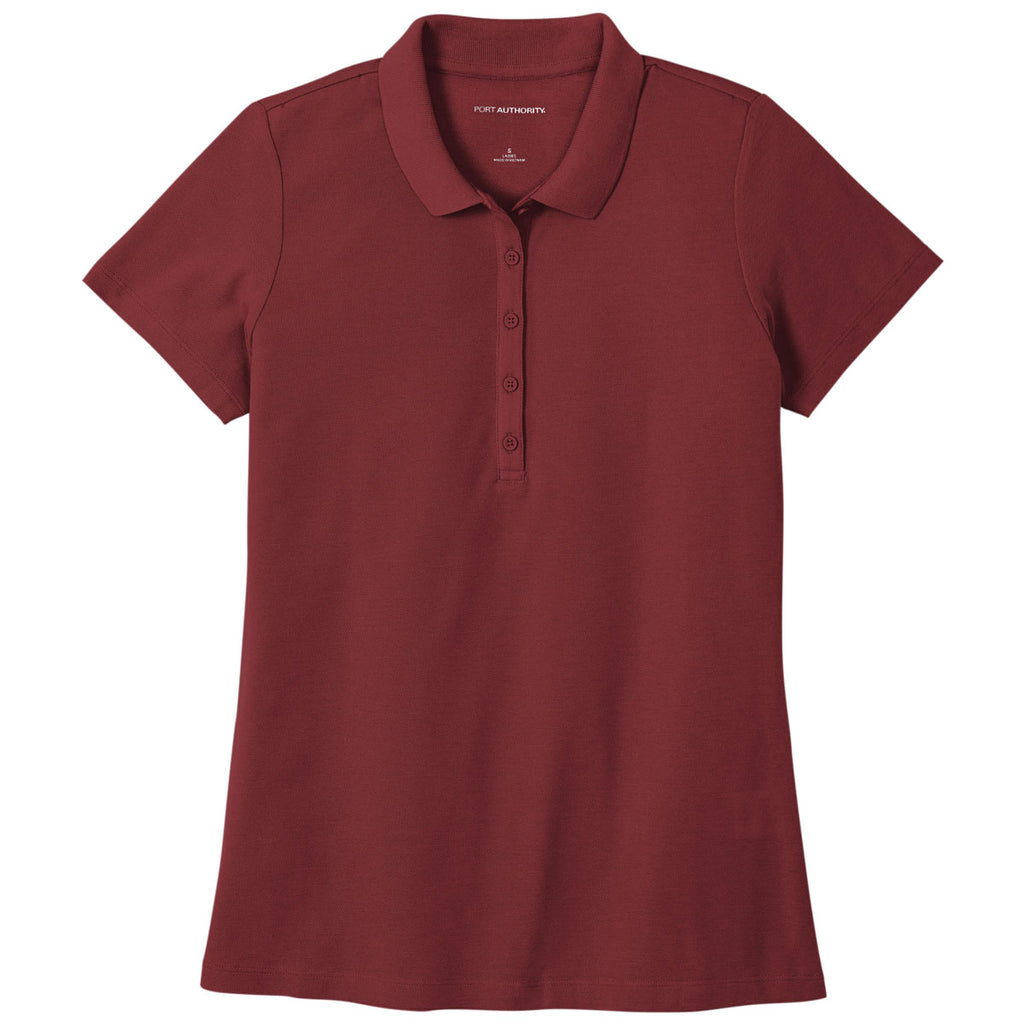 Design a custom embroidery for the Port Authority Women's Burgundy SuperPro React Polo for a look that can go from the office to dinner with friends with complete ease. This classic uniform style meets performance wear in this poly cotton polo that is ready for anything life can bring. Add a company logo to create a corporate uniform that is comfortable and convenient with stain release, snag resistance, and Easy Care qualities. The flat knit collar with five button placket makes this polo easy to layer or wear alone. Enjoy a day with friends, at work, or anywhere you please and look great while doing it.Corresponding Men's Style:Port Authority Men's Burgundy SuperPro React Polo