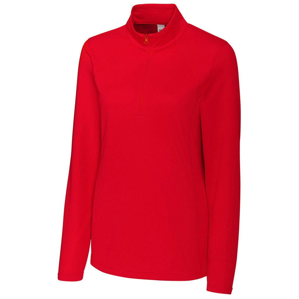 The Clique Women's Red Ice Half Zip is perfect for working out at the gym or going for an invigorating run in the woods. This shirt can have your custom logo added on any one of the many color options available. This shirt offers plenty of attractive features that will make this product an ideal purchase including a lightweight 100% polyester material, mock neck style, half zip design, and much-appreciated moisture wicking fabric. Purchase these pullover shirts in bulk because once your employees see them, they are all going to want one for themselves as employee apparel.Corresponding Men's Style:Clique Men's Red Ice Half Zip