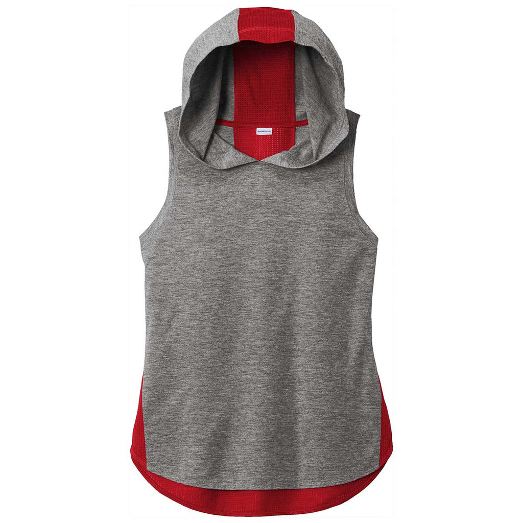 Sport-Tek Women's True Red/Dark Grey Heather PosiCharge Tri-Blend Wicking Draft Hoodie Tank