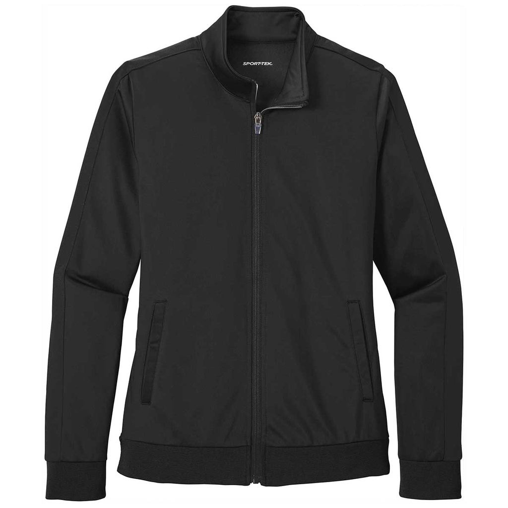 Get ready to run with a custom embroidery Sport-Tek Women's Black/Black Tricot Track Jacket in a variety of color and size combination. Made from 100% polyester tricot this track jacket is perfect for the sports enthusiast that participates in team events or simply enjoys a nice run each day. The soft brushed backing and cadet collar add to the overall appeal of this classic look. Complimentary color stripes appear on both sleeves and shoulders. Add a company logo to use these as employee gifts or uniforms as needed to maintain a consistent look.Corresponding Men's Style: Sport-Tek Men's Black/Black Tricot Track Jacket