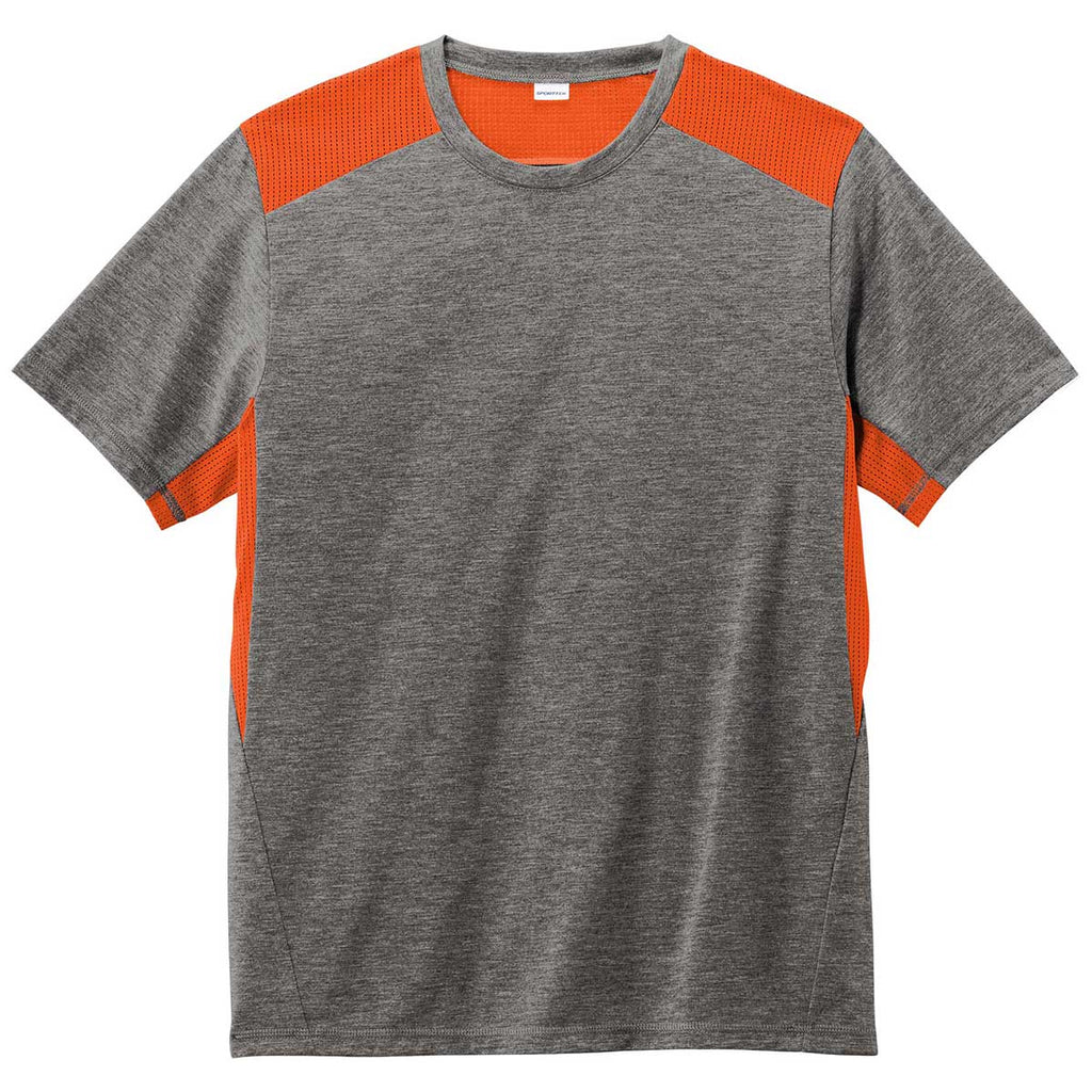 Sport-Tek Men's Deep Orange/Dark Grey Heather PosiCharge Tri-Blend Wicking Draft Tee