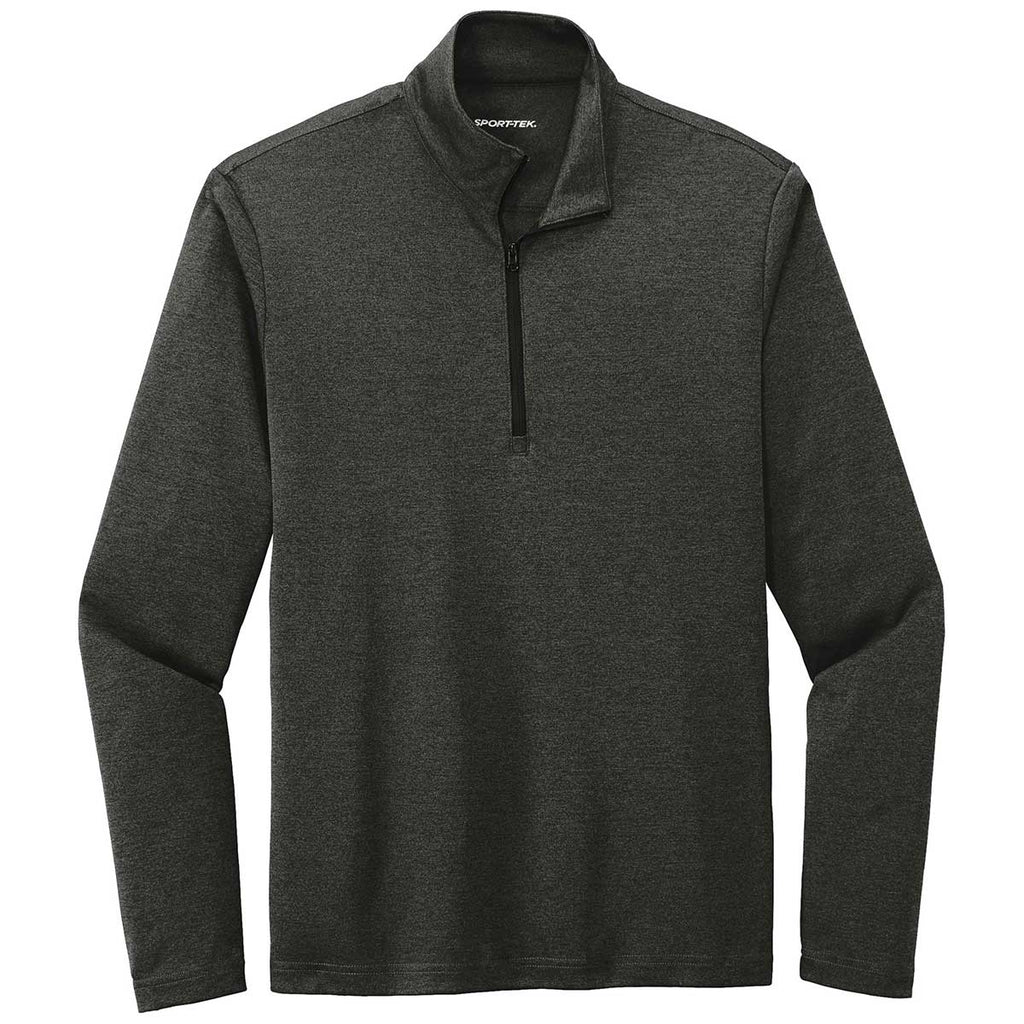 Diversify your wardrobe with a custom embroidery Sport-Tek Men's Black Heather Endeavor 1/4 Zip Pullover. Created from 100% polyester, this 1/2 zip is ideal as part of warm-up gear for a team event or your personal exercise routine. The subtle heather texture makes this piece fashionable and functional with the option to add a company logo or custom design. Easy to layer, this half zip would fit well over a tank or lightweight tee or could be worn alone if desired. Add a corporate logo and offer these as part of company uniforms or employee gifts that will be truly appreciated.Corresponding Women's Style: Sport-Tek Women's Black Heather Endeavor 1/4 Zip Pullover