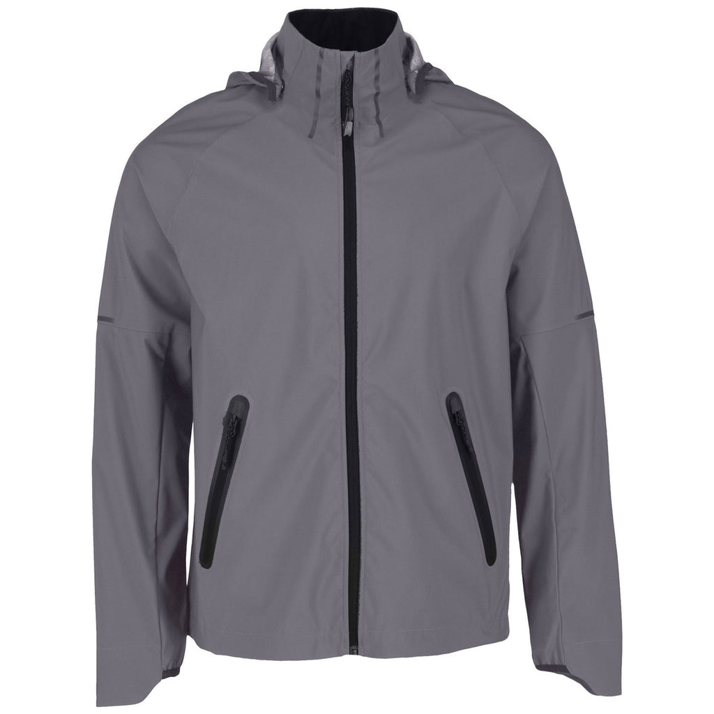 Elevate your look with a custom Elevate Men's Grey Storm Oracle Softshell Jacket, the jacket that can be worn anywhere. This gorgeous jacket is made of 100% polyester bonded to a polyester graphic pattern knit that is waterproof and breathable. The lightweight construction makes this ideal for hiking, biking, or commuting to work. A graphic camo pattern interior adds a bit of extra style with an interior zippered pocket with key hook. Add a company logo to use as part of employee apparel or gifts for any occasion. The snap off hood even keeps you dry if the weather takes a turn for the worse.Corresponding Women's Style:Elevate Women's Grey Storm Oracle Softshell Jacket