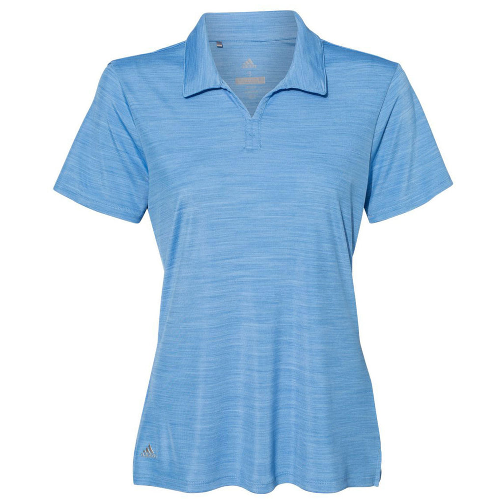 Make a custom statement with the Adidas Women's Lucky Blue Melange Sport Polo in a range of colors and sizes. Created from 100% recycled polyester with striated heather interlock, this polo is a must have for both home and office. Add a custom logo to use as employee apparel that will look good and be easy to wear during long work hours. A self collar with fashion V-neck placket adds a bit of style to the polo design and the contrast Adidas logo on the right hip screams quality. A corporate embroidery allows this to be an option for corporate apparel whether paired with a jacket or worn alone as a statement piece.