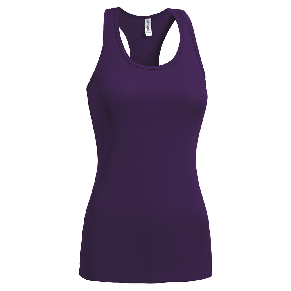 Crafted with strength and femininity in mind, this classic-cool Expert Women's Dark Purple Endurance Racerback provides breathable comfort and sporty flair to active ensembles. Wide armholes enable a full range of movement a while relaxed fit form ensures the tank resonates with your body. Crafted from breathable, microfiber polyester pk maX. Cut to lengthen your torso and flaunt your decolletage. It features moisture-wicking material and treated with Bodyfreshe tech to inhibit the growth of odor bacteria. Exhibit support for sports teams with this custom logo imprinted activewear that will amplify team spirit as well as your company's giveaway spirit.The minimum order for this product is 12 pieces.