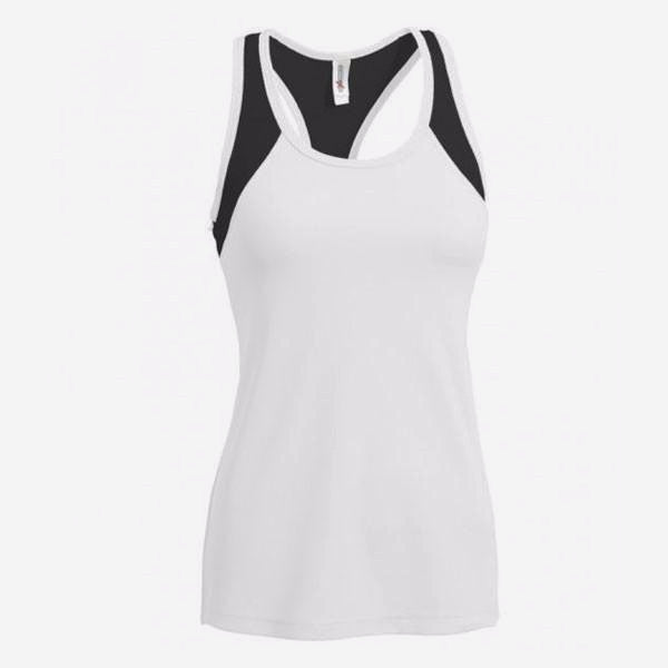Head to the gym in this racerback-inspired Expert Women's White/Black Distance Singlet that screams 'I don't glisten, I sweat' attitude. Self-binding neck and armholes ensure no-fuss movement of your guns. The racerback cut will make you feel workoutaholic the more iron you pump. Contrast panels add to aesthetics of this sleeveless workout top while a fold over pocket holds your essentials. Treated with antibacterial and sweat-wicking properties. Customize this women's singlet with your logo to bring your company to the public eye. Perfect for dance studios, gyms and other businesses related to active lifestyle.The minimum order for this product is 12 pieces.