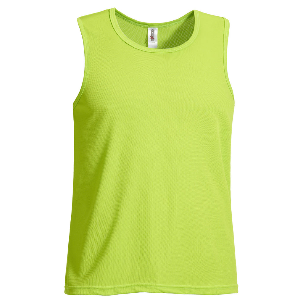 Expert's Expert Men's Key Lime Singlet flaunts a laid-back form/silhouette that liberates your guns from the shackles of a regular t-shirt. Self-fabric binding at neck and armhole guarantees a chafe-free comfort. Relaxed fit assures freedom and mobility. BodyFreshe anti-bacterial treatment keeps the singlet fresher for longer by curbing the growth of bacteria. Moisture-wicking properties will deflect any sweat that develops as training gains momentum. Order custom singlets for your next event and help your clients stay active with this men's tank featuring your logo and let the world know your company is for a healthy world!The minimum order for this product is 12 pieces.