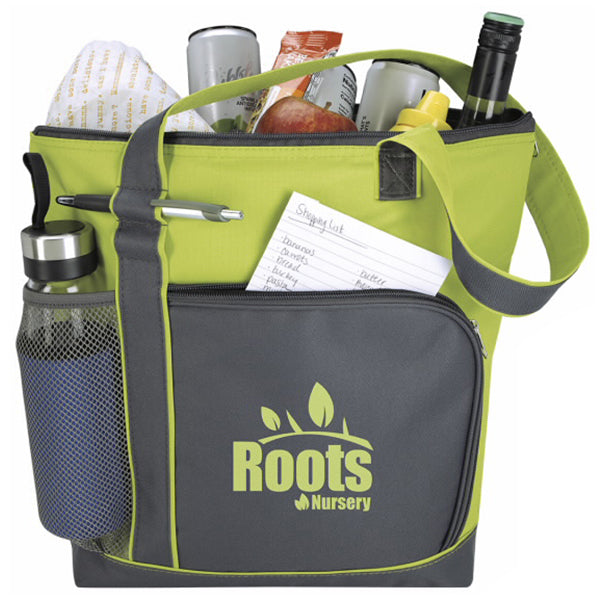The Atchison Charcoal/Apple Green Market Cooler Tote with custom logo is definitely what you need when you're out on a company picnic, having lunch after a team-building exercise outdoors or just as part of a new employee welcome package. Print your company logo on it for extra swag!The minimum order for this product is 100 pieces.