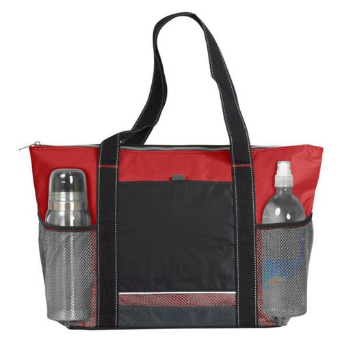 Promos don't get much cooler than this customizable Atchison Red Icy Bright Cooler Tote - a perfect companion for any outdoor event! It features a large compartment that is PEVA lined and can carry up to 24 cans. Promote a company message or logo on this cooler tote ideal for tailgating, barbecues, picnics and more. A zippered closure keeps beverages safely secured. Shoulder-length carry handles and two side mesh pockets make it a versatile way to carry drinks in style.