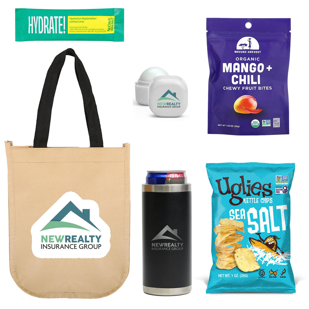 - Kit Contains: Mavuno Harvest Mango + Chili Bites (1.94 oz), No Days Wasted Lemon Lime Hydrate! Electrolytes (0.32 oz), Uglies Sea Salt Potato Chips (2 oz), customizable Ultra Slim Stainless Insulator, customizable, tropical punch-f