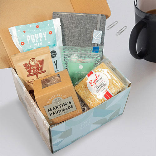 From sweets and snacks to timeless office accessories, the Batch & Bodega White Hello, There Batch - Deluxe is a charming way to let your employees who are working remotely know that your company values them. Add your company's custom logo to the stylish gift box for an unexpected gift that will make anyone smile.