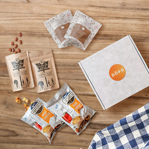 If you're looking for a delicious way to treat your employees who are now working from home, bring a fully-stocked break room to them with the help of the Batch & Bodega White Hopscotch Batch - Deluxe. It contains sweet and savory treats, all packaged within a gift box that can be personalized with your custom logo.