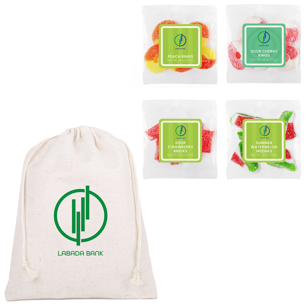 Grab and go with a custom SugarSpot Natural Fruit Cocktail Sweetie Satchel filled with a medley of fresh, fruity flowers. These snackable packs are great for a day at the park, camping, or gifts at larger events and parties. Everything comes in a small, reusable drawstring bag for convenience. Place an order right away before these sell out.The minimum order for this product is 100 pieces.