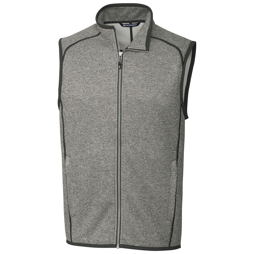 The Cutter & Buck Men's Polished Heather Tall Mainsail Vest offers modern style and comfort all rolled into one attractive vest. With an embroidery company logo on the front, you can turn this stylish item into an advertising item at the same time. Available in classic colors, you choose the color that works best with your company logo. Some of the features you'll find with this men's vest include a 100% polyester material, brushed fleece on the interior, full zip front, front pockets with zippers, and the CB logo on the back yoke. This corporate apparel item makes an excellent gift for employees, future employees, and guests at corporate events, such as golf events.