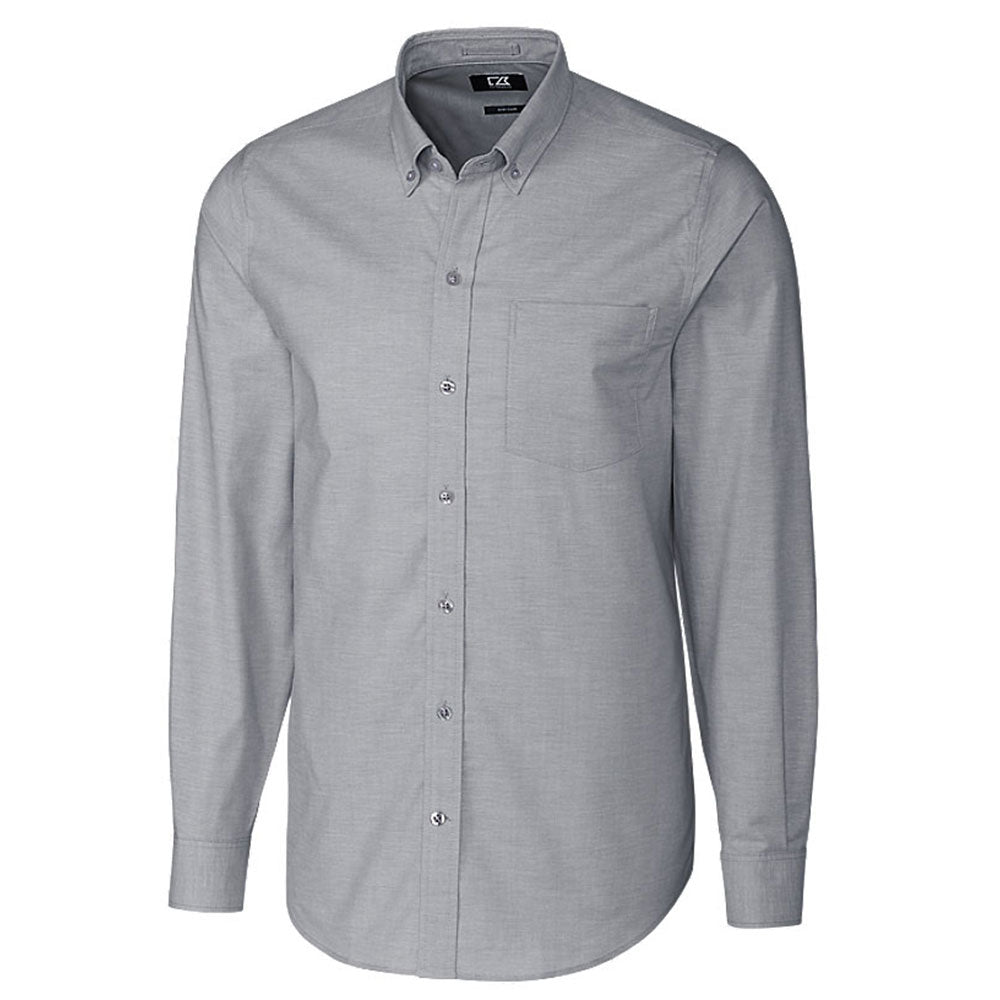 The Cutter & Buck Men's Charcoal Tall Long Sleeve Epic Easy Care Stretch Oxford Shirt is the perfect canvas for your company logo. This shirt is suitable for many workplaces and is nice to have under a formal jacket. The design looks great whether tucked or untucked. The cotton and polyester surface includes a button-down collar, a front pocket area, barrel cuffs for a sturdy look, and a striking border around the collar. The full layout adds a strong surface that is easy to wear for any occasion. This adds a nice look on its own, what with its striking stitched layout and its fair color layout no matter what you prefer to wear it in. Order this shirt for your employees to add to their work wardrobes.Highlights
