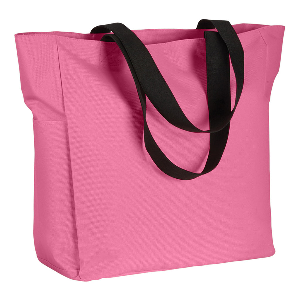 The minimum order for this product is 12 piecesYou arrive to a grocery store and find long lines at every checkout except the self-checkout lanes. Place the highly durable tote bag on the study metal next to the register and start organizing your food and beverages from the ride home. Why deal with flimsy paper bags, when you can rest assured the rugged cotton canvas tote bag never rips or tears. The BAGedge Pink Polyester Zip Tote bag includes a zippered main compartment large enough to secure everything you need for feeding your family. Add a custom logo to the large imprint area to create an effective way to promote your company in the community.