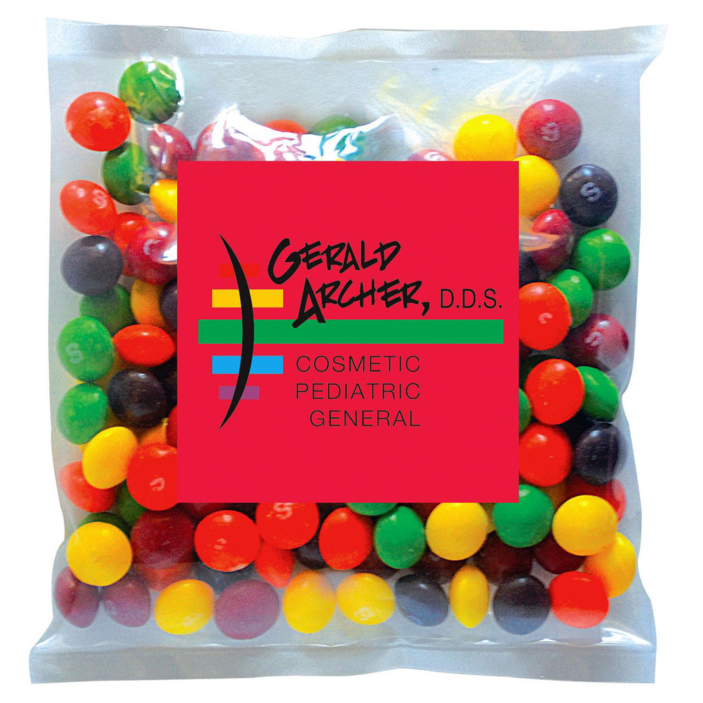 - Filled with Skittles, these promotional gifts include a 4CP label for branding opportunity