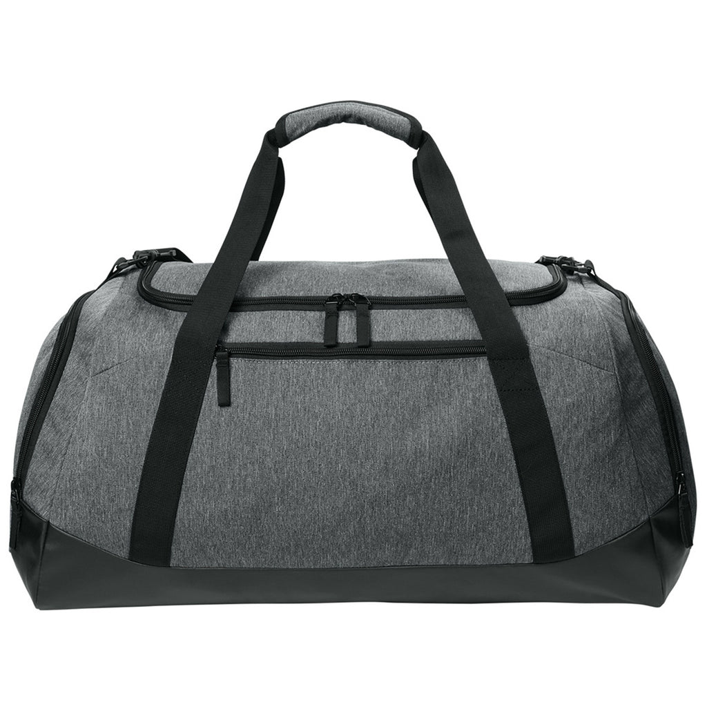Try out a custom logo on the Sport-Tek Heather Grey Large Rec Duffel with a large D-shaped zippered main compartment opening. This larger duffel is perfect for away games and uniform team gear with style and functionality. Pack your gear, uniform, and a change of clothes with ease as you load up and head out.Highlights