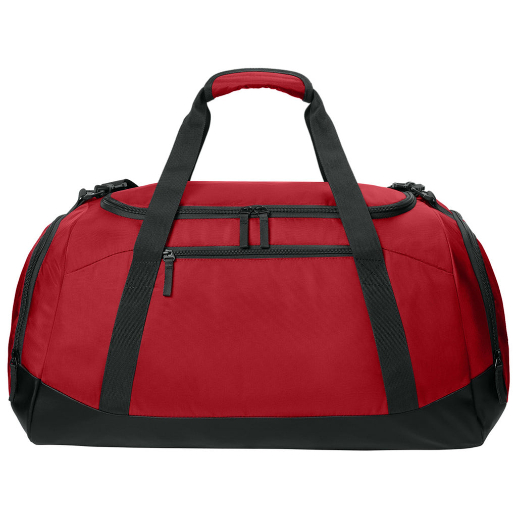 Try out a custom logo on the Sport-Tek Deep Red Large Rec Duffel with a large D-shaped zippered main compartment opening. This larger duffel is perfect for away games and uniform team gear with style and functionality. Pack your gear, uniform, and a change of clothes with ease as you load up and head out.Highlights