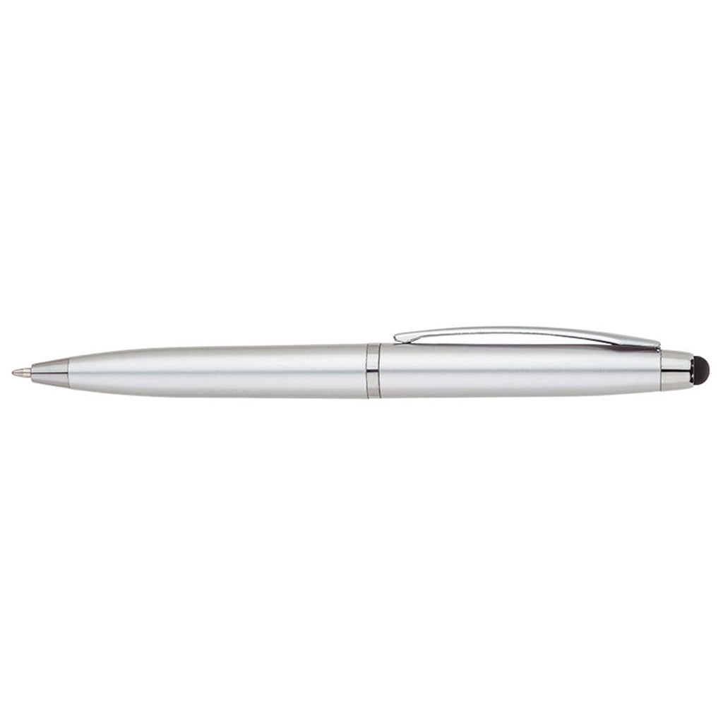 Whether the medium is a paper, a notebook or a touch-screen device, Axis Logomark Silver Pen + Stylus allows you to record your great ideas smoothly. It's a twist action pen with elegant chrome accents. Impress your employees or clients by customizing with engraving your company logo.