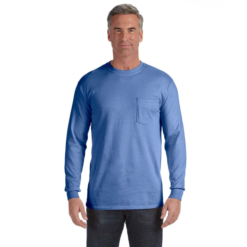 Comfort Colors Men's Flo Blue 6.1 Oz. Long-Sleeve Pocket T-Shirt