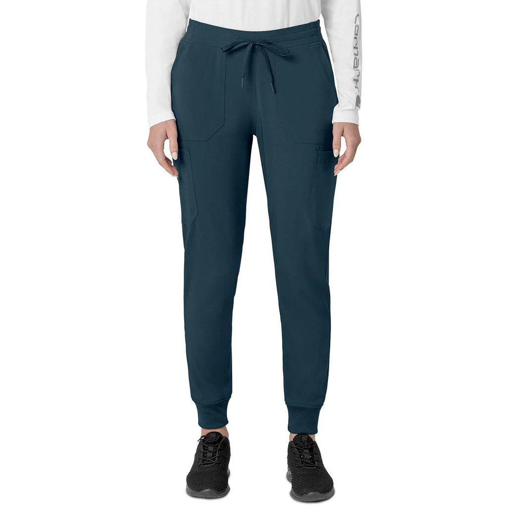 Add embroidery to the Carhartt Women's Navy Eight-Pocket Cargo Pant for an easy-to-wear look that is ready for whatever is on your schedule. The elastic waistband with drawstring creates an adjustable fit, and two deep slash pockets with multiple other pockets keep you and your necessities organized. Get active or go to work, this pant will deliver.Highlights