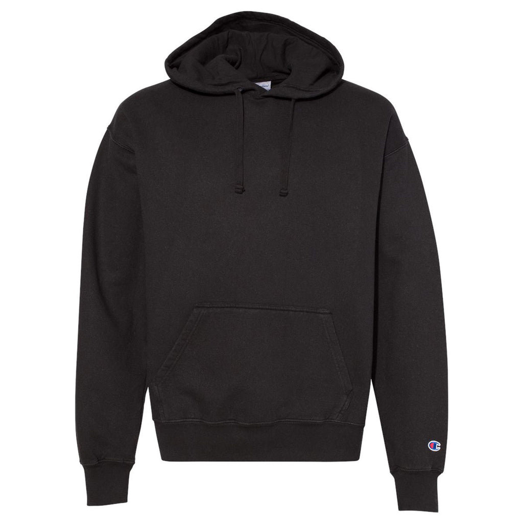 Conquer the world in a custom screen print Champion Men's Black Garment Dyed Hooded Sweatshirt. Created from a no shrink cotton rich polyester blend with double knit stitching throughout, this hooded sweatshirt is a must have for most wardrobes. The jersey lined hood with drawstring is perfect for an early morning or late-night run as part of athleisure apparel collections or can carry a corporate logo to be used as employee gifts. The kanga-pocket keeps a phone and keys close at hand as you go about your day with planned activities and events. Create a fully custom logo to use these hooded sweatshirts for corporate events or trade shows as a way to showcase your company. This is one of the most cost-effective ways to get your name out on a functional product.