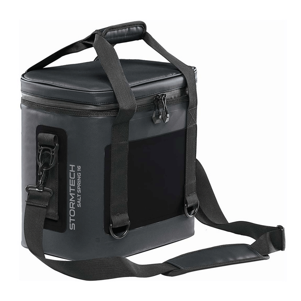 Add a custom logo to the Stormtech Black/Dolphin Salt Spring Cooler Bag and never lose your lunch again. The high-end cooler bag will keep refreshments crisp and fresh in its insulated, leak proof compartment whether you are enjoying lunch at work or a picnic in the park. Add heat transfer you choose or create to the cooler bag to make sure it does not get lost. A fun and functional corporate gift, this item can be use then tossed over your shoulder for easy carrying. The adjustable shoulder strap makes it easy. Place an order today to have these ready for warmer months.