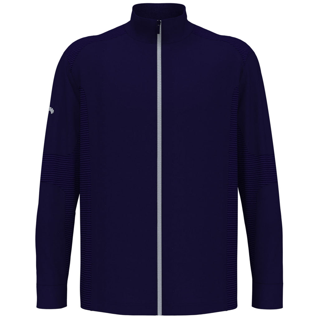 Add embroidery to the Callaway Men's Peacoat Navy Full Zip Ottoman Jacket for a lightweight thermal with UV blocking, branded collar, and front entry pockets that are ready to help you take on the day. The heat-sealed label means no annoying tag as you work out, jog, or hang out with friends. A great option to help improve your logoed apparel line. Place an order today.Corresponding Women's Style: Callaway Women's Peacoat Navy Full-Zip Ottoman Jacket