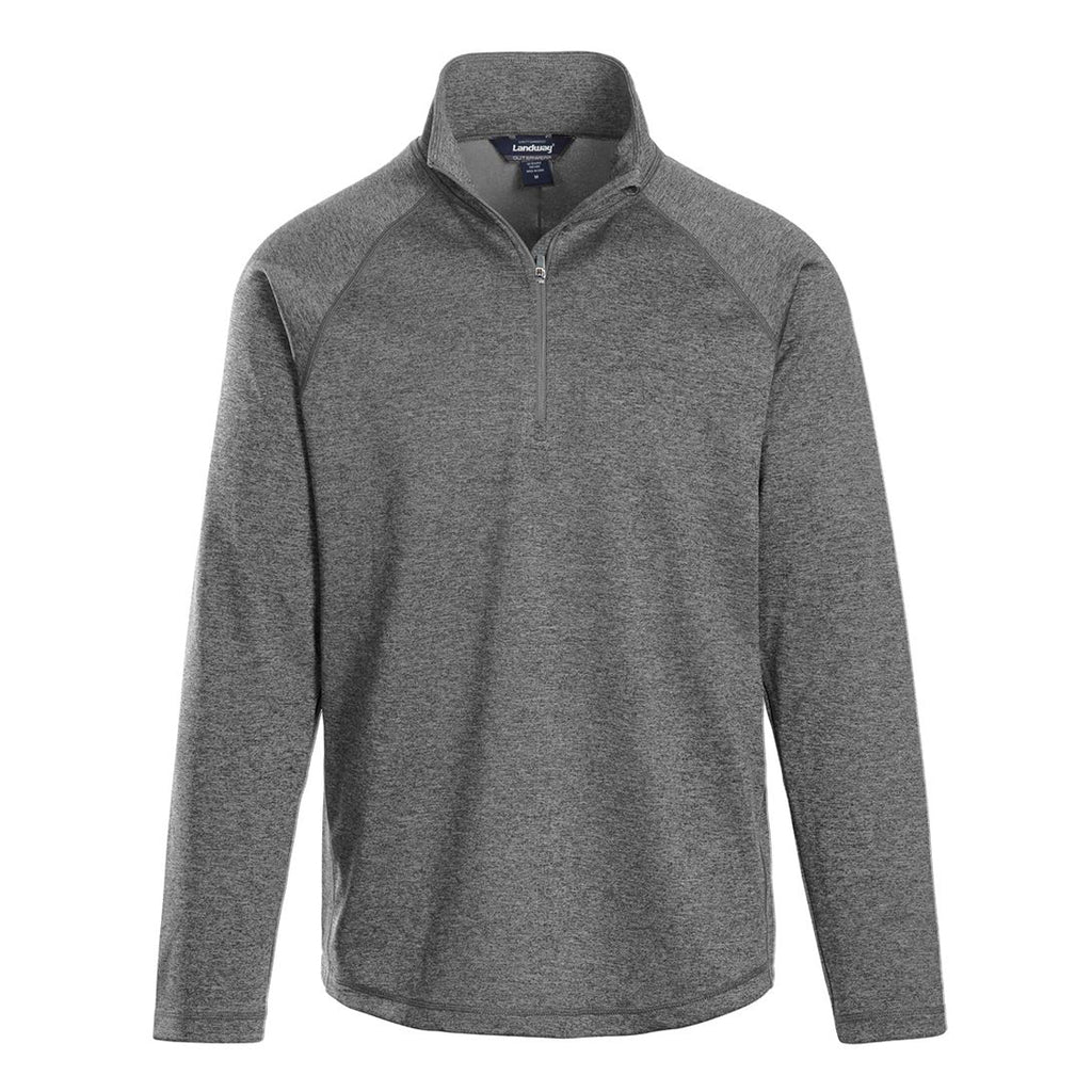 The company logo Landway Men's Heather Grey Alpha Heathered 1/4-Zip Pullover is a stylish men's top which is available in four fashionable colors. With features such as 100% yarn-dyed polyester melange fabric, active dry moisture wicking capabilities, raglan sleeves, flatlock stitching, and four-way stretch fabric, this shirt is a must-have for any man's wardrobe. With your embroidery company logo added to the shirt, you have an ideal gift to distribute at trade shows, hand out to potential employees at recruiting events or award to the first, second and third place winners at upcoming golf events.Corresponding Women's Style: Landway Women's Heather Grey Alpha Heathered 1/4-Zip Pullover
