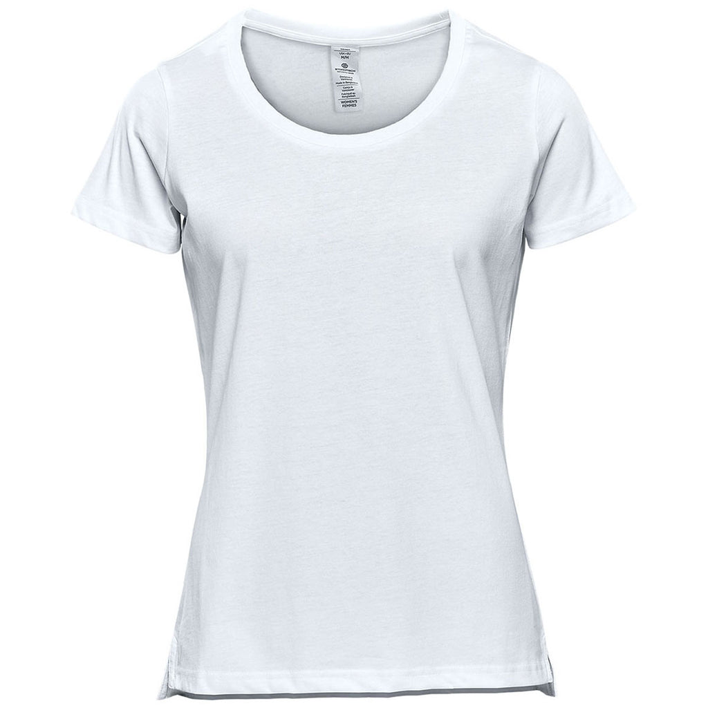Get comfortable with a custom Stormtech Women's White Equinox Short Sleeve Tee with screen printing. The Equinox tee is made of BCI cotton blended with a polyester single jersey fabric for a super soft feel that draws moisture away from the skin. This tee is simple, yet very versatile. A company logo creates a uniform or employee gift, while a custom screen print adds to your logoed apparel options. Tees are great for wearing alone or layering depending on your daily activities. Choose the Equinox for working out, hanging with friends, or lounging comfortably at home. Place an order today.Highlights